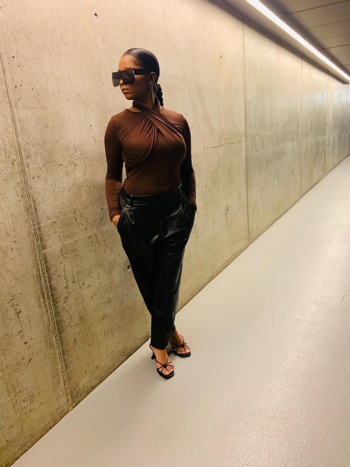 This fashionable top is nice to combine with leather pants. Nice jeans are also an option to finish the outfit.